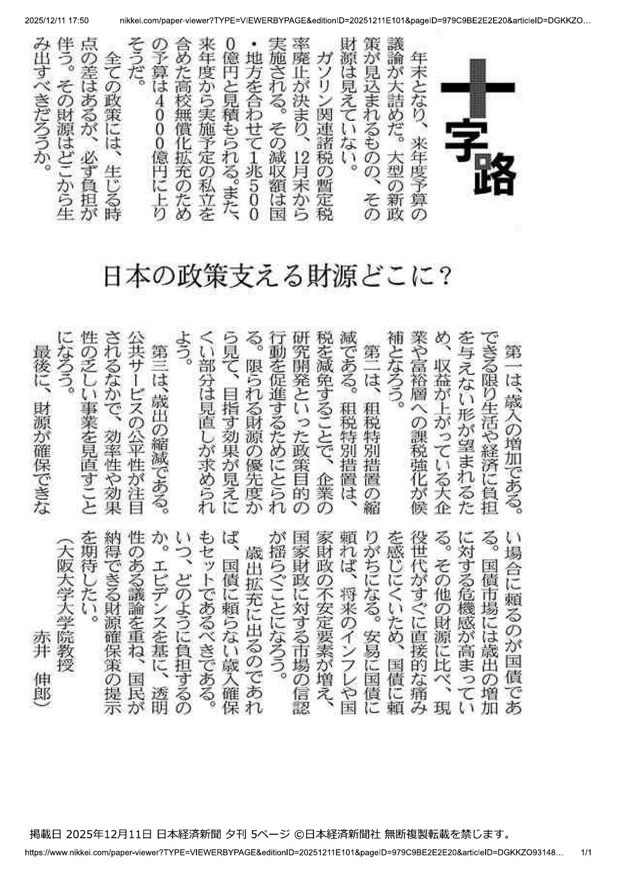 以下では、これまでに、日本経済新聞夕刊に掲載した「十字路」を紹介しています。